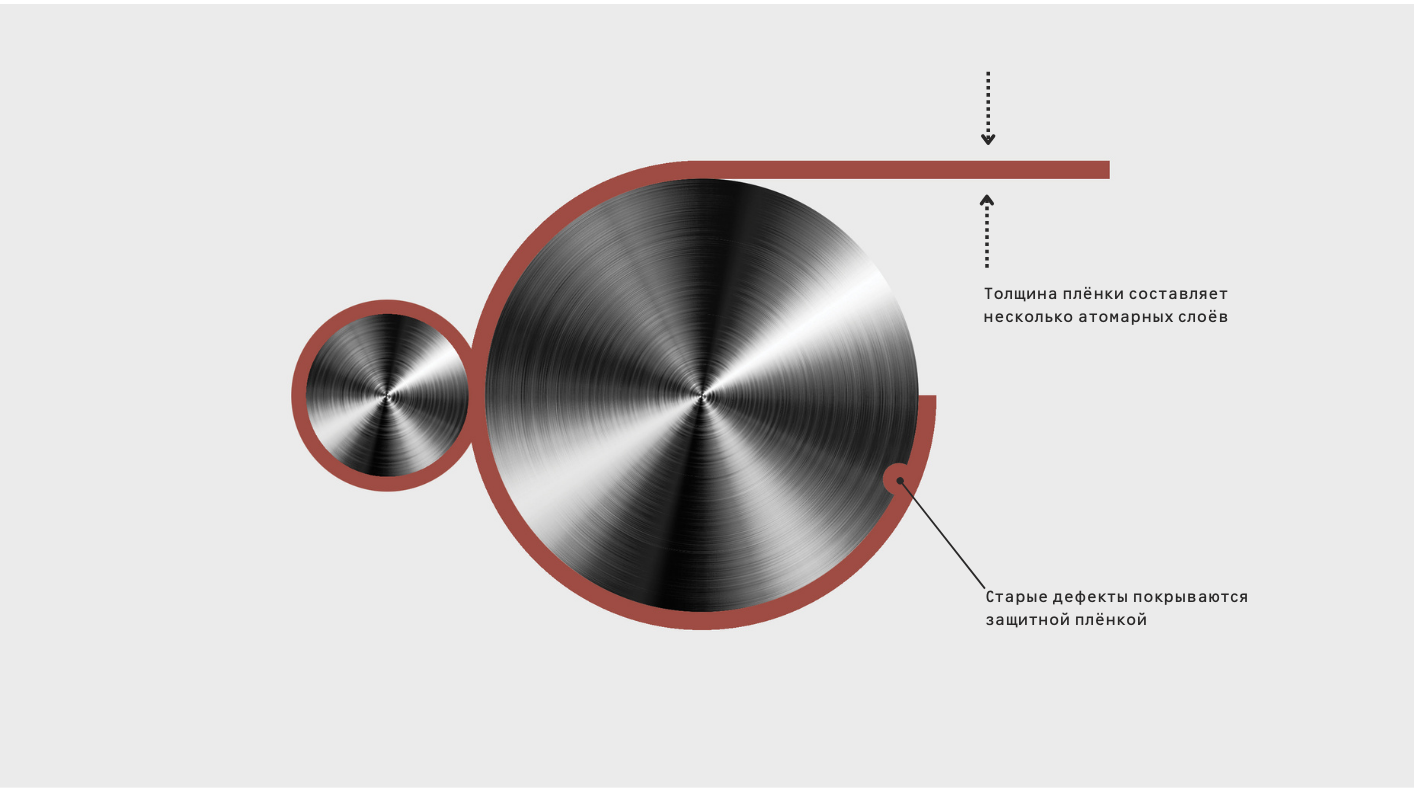 Чтобы восстановить и защитить поверхности трения, мы используем электрохимические свойства металла меди. Ионы меди, присутствующие в смазочном материале, встраиваются в кристаллическую решетку железа, тем самым заполняя поврежденные участки, в результате чего постепенно образуется медная пленка на всей поверхности трения.