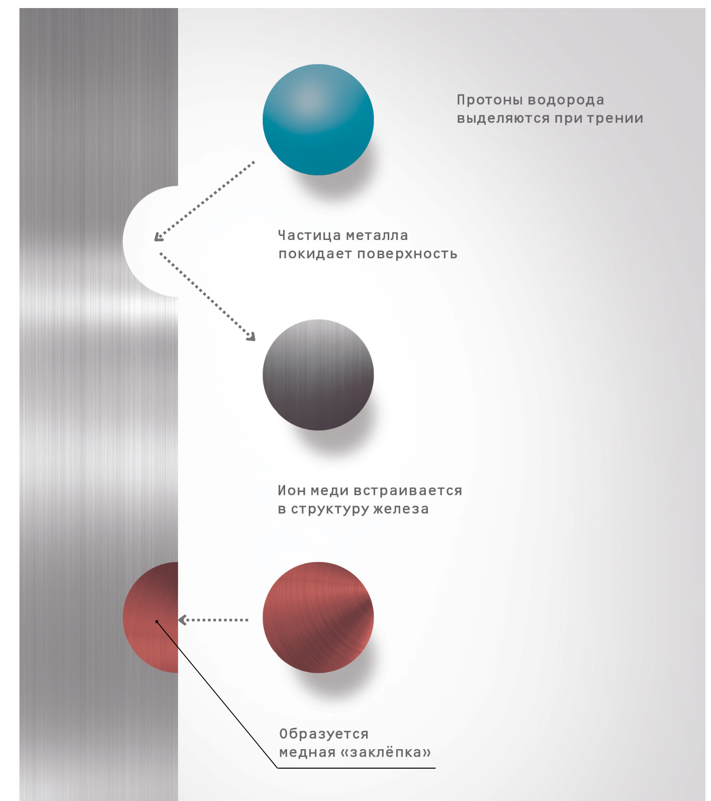 Главная причина износа металлических поверхностей — это не механическое истирание, а воздействие свободного водорода, который выделяется в процессе трения. Водород «вырывает» фрагменты кристаллической решетки железа, ускоряя износ поверхностей трения.